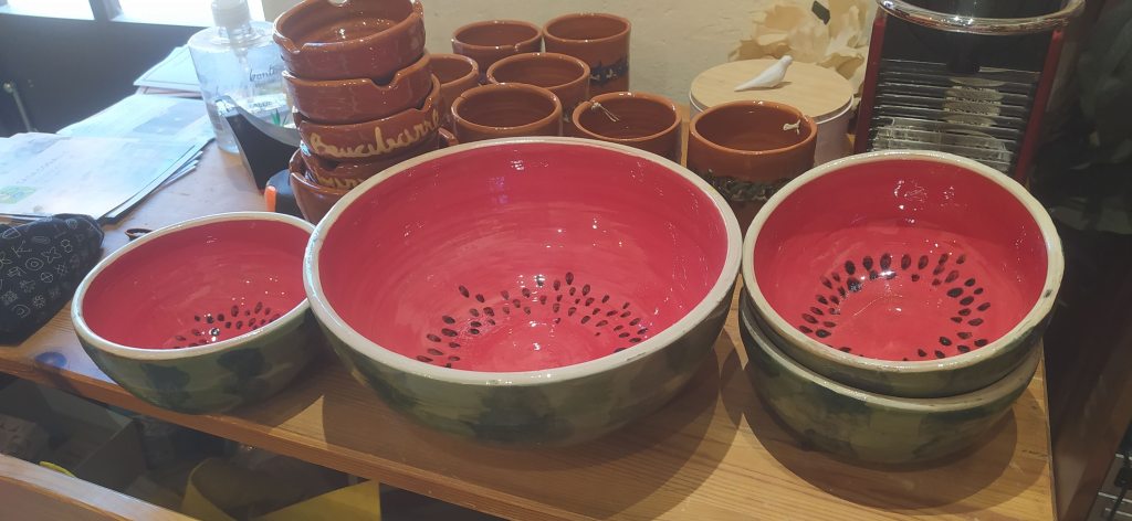 Elaboro también piezas con estética y utilidad más actual intentando siempre incorporarlas a una imaginaria línea de tiempo, intuyendo cómo hubiese evolucionado la alfarería de Benabarre hasta nuestros días si no hubiese desaparecido. Con esta intención mantengo el protagonismo del color de la arcilla incorporando colores mas vistosos en decoraciones que siguen siendo sencillas para mantener el carácter popular de la cerámica que aquí se produce.