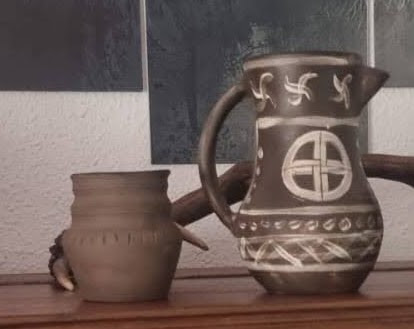 Reproduzco las piezas que tradicionalmente se elaboraban en Benabarre con la austera decoración que caracterizó a las diferentes alfarerías que aquí trabajaron y que se encuentran estrechamente relacionadas con las de Naval y Bandaliés, localidades en la que la tradición alfarera perdura todavía.